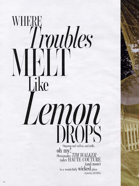 | "Where Troubles Melt Like Lemon Drops" by Photographer Tim Walker W Magazine, October 2010 Stylist : Jacob K Hair: Malcolm Edwards; Makeup : Val Garland Model : Karlie Kloss |