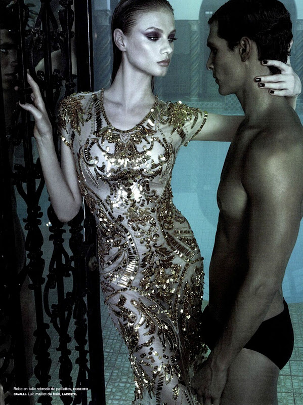 I just adore these ones. I love the vampy, siren feel and the cool lighting. The men are hot too which is always a plus. I love the shot where her face is covered and she's lying ontop of the one model. And the second and second last images are magnificent!